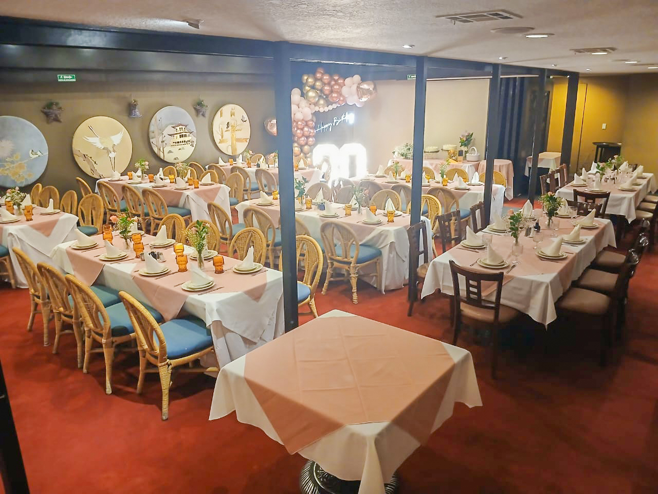 Un espacio elegante y sofisticado que se adapta a tu estilo, con decoración personalizada según tus preferencias. La disposición de las mesas, la mantelería y cada detalle se diseñan a tu gusto para crear una experiencia única y memorable.